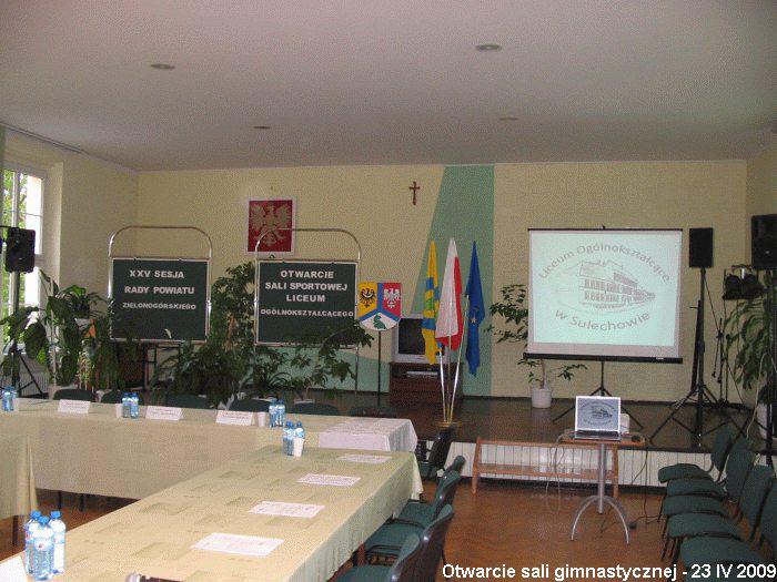 Otwarcia sali w obecności radnych Powiatu Zielonogórskiego dokonali Starosta Zielonogórski – Edwin Łazicki, Burmistrz Sulechowa - Ignacy Odważny, Jerzy Kmito oraz Dyrektor Liceum Ogólnokształcącego pani Halina Szeląg.